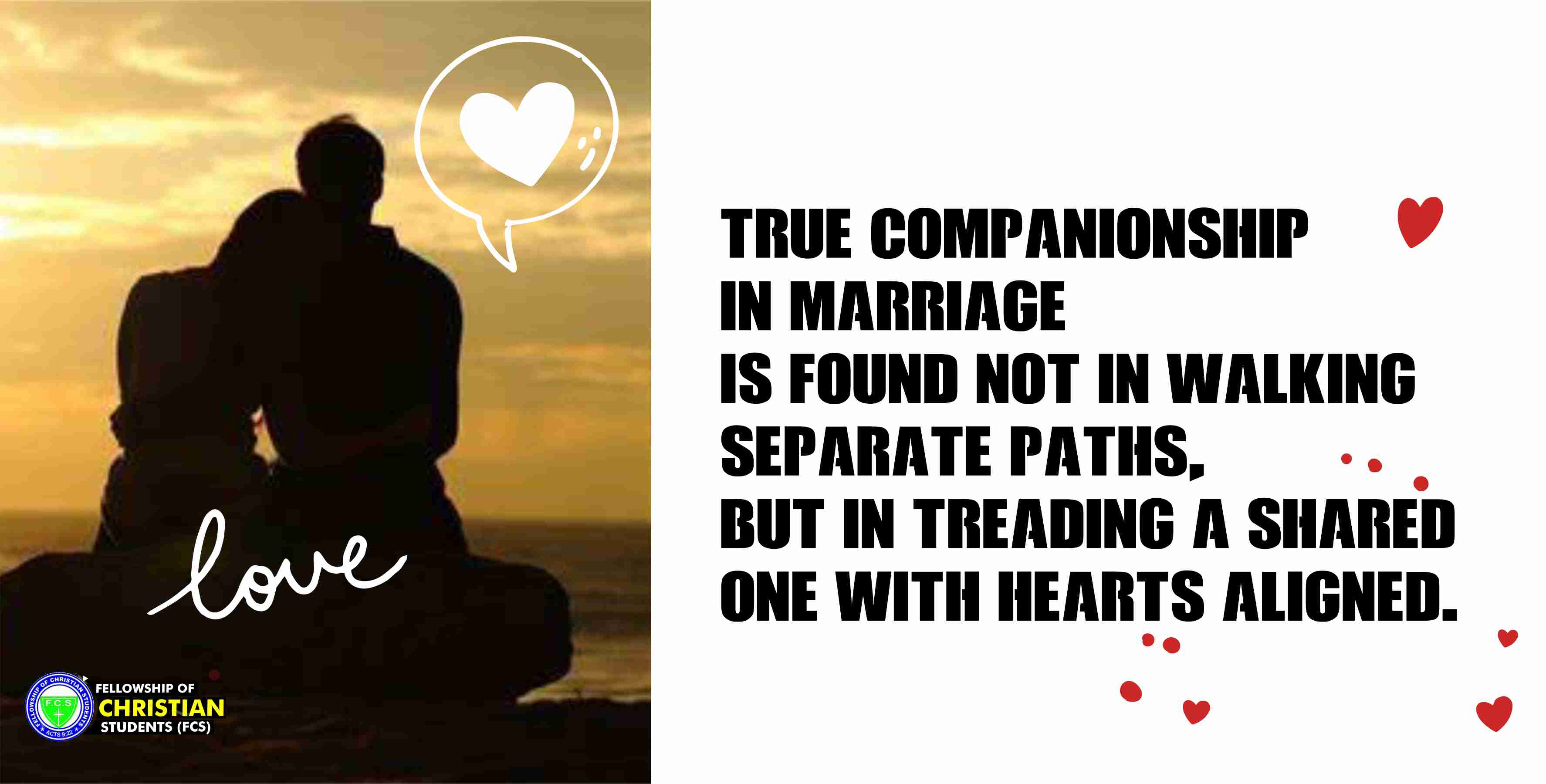 Therefore, one of God’s purpose for marriage is companionship of the couple which is to mutually complete both the man and the woman. (Husband and wife). Before Eve was created, Adam was incomplete. Adam needed Eve and Eve needed Adam as husband and wife and wife as husband accordingly. In other words, the man was created to need somebody to be with him as his wife and the wife was created to need somebody to be with her as her husband.